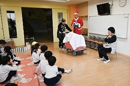 幼稚園のクリスマス会が行われた令和7年12月19日、ちびっこくらぶ(預かり保育)では、園長サンタからクリスマスプレゼントをもらい、子ども達は大喜びでした。みんなで仲良く遊んでね!